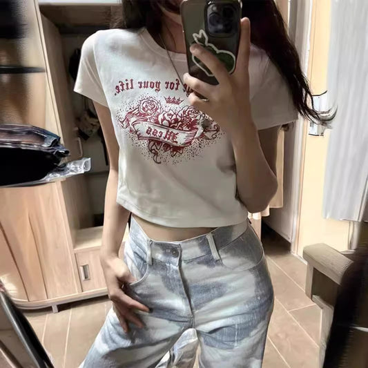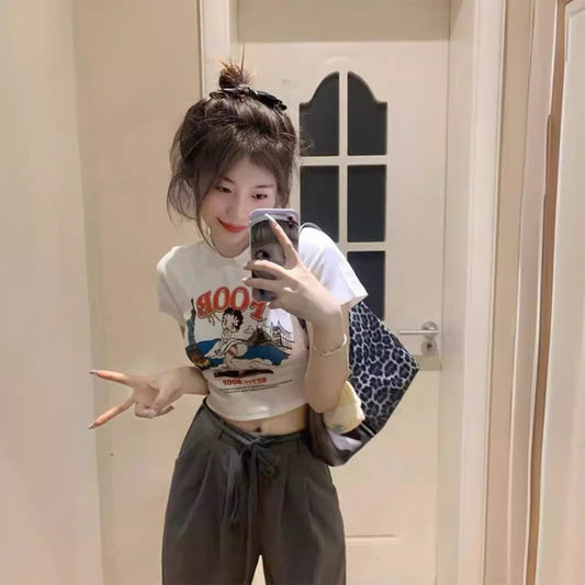 TP012 印花露脐短上衣