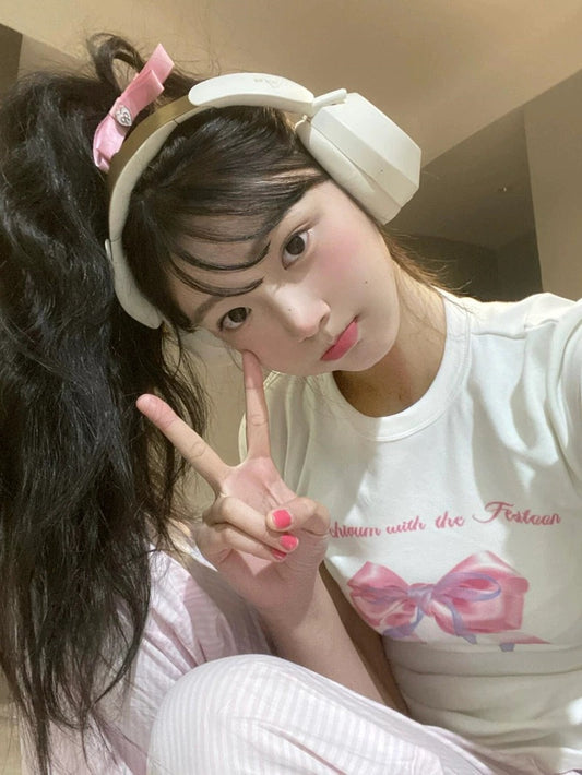 TP024 灰色假两件蝴蝶结长袖T恤