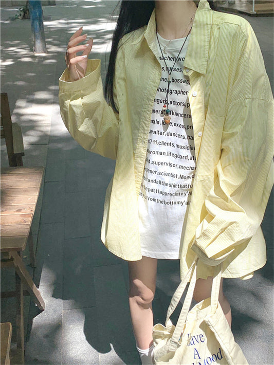 TP019 慵懒风细条纹Polo领衬衫外套