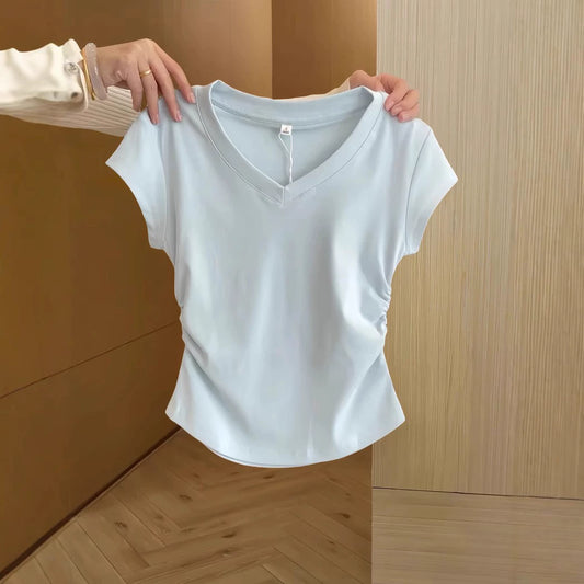 TP022 V领正肩百搭收腰上衣