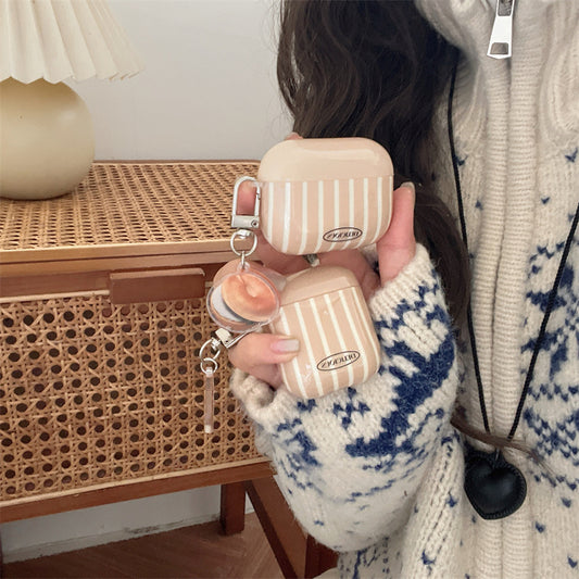 C166 Airpods保护壳 简约条纹+贝果挂件