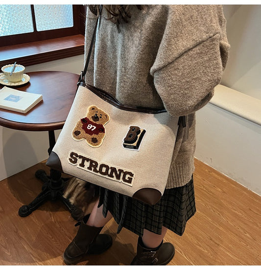 AB051 小熊刺绣大容量托特包