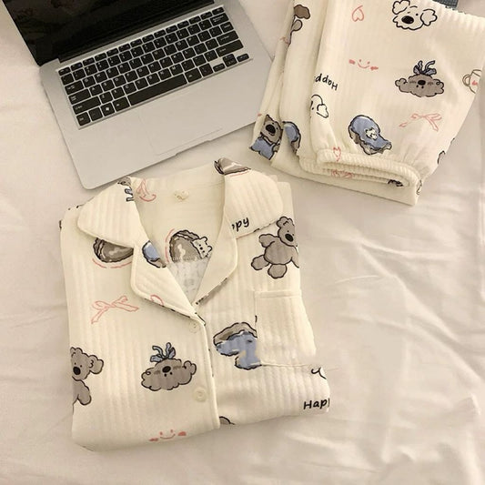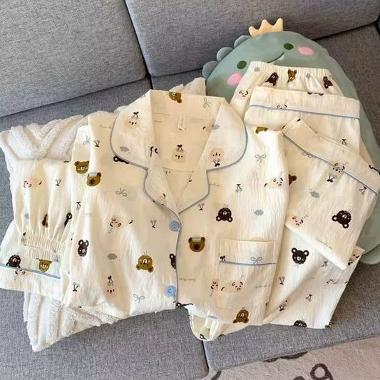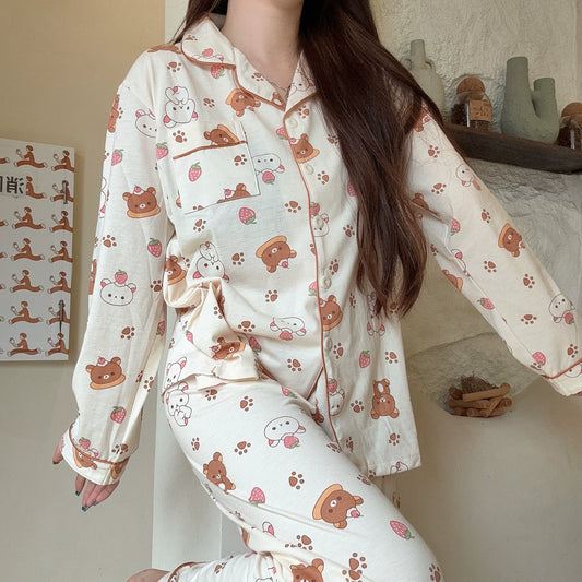 SW024 棉质哈密瓜自嘲熊长袖长裤睡衣套装