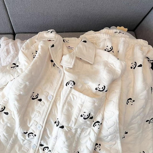 SW018 空气棉夹层熊猫睡衣长袖套装