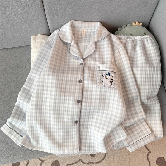 SW026 棉质格子苹果自嘲熊睡衣套装