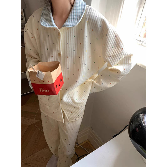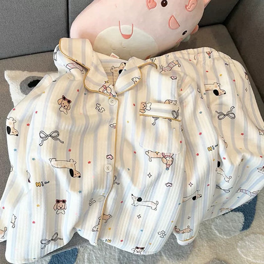 SW020 空气棉夹层线条小狗睡衣长袖套装