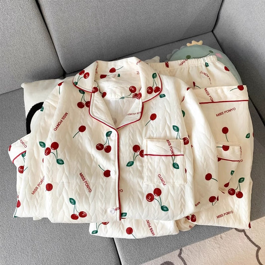 SW015 空气棉夹层樱桃睡衣长袖套装