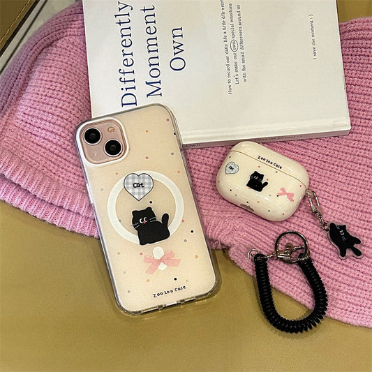 C159 Airpods保护壳 可爱小黑猫+挂绳