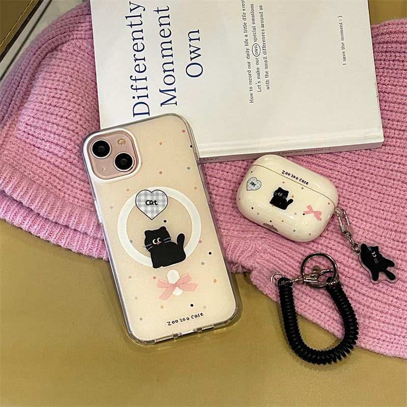 C159 Airpods保护壳 可爱小黑猫+挂绳