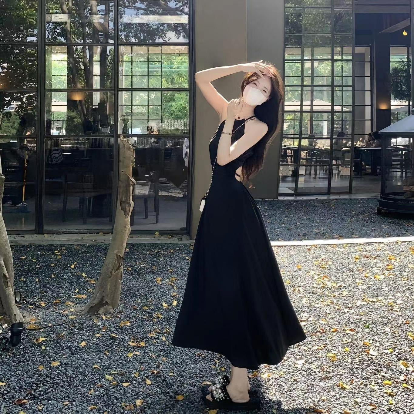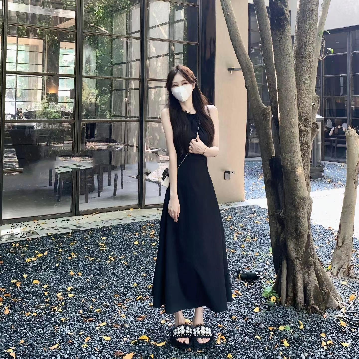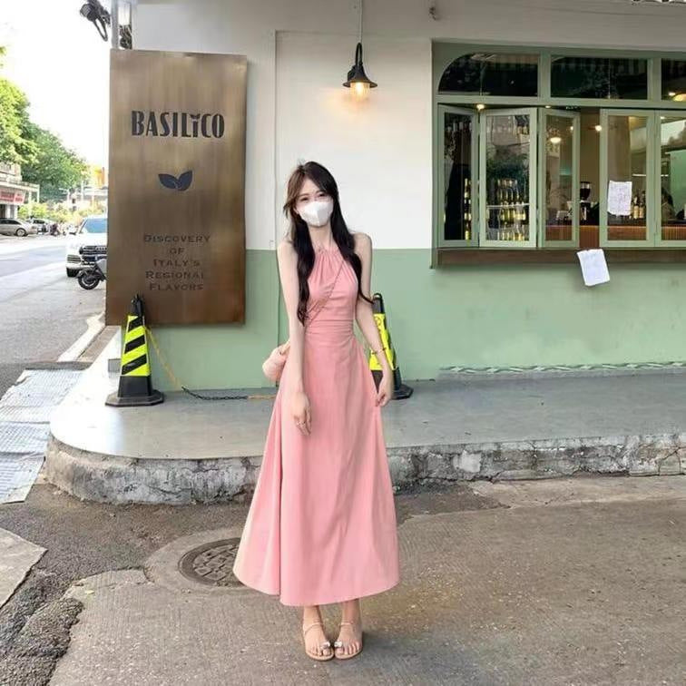 DS025 挂脖露腰连衣裙