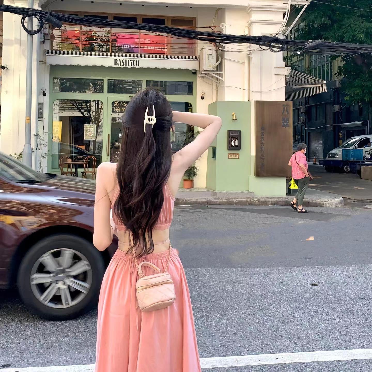DS025 挂脖露腰连衣裙