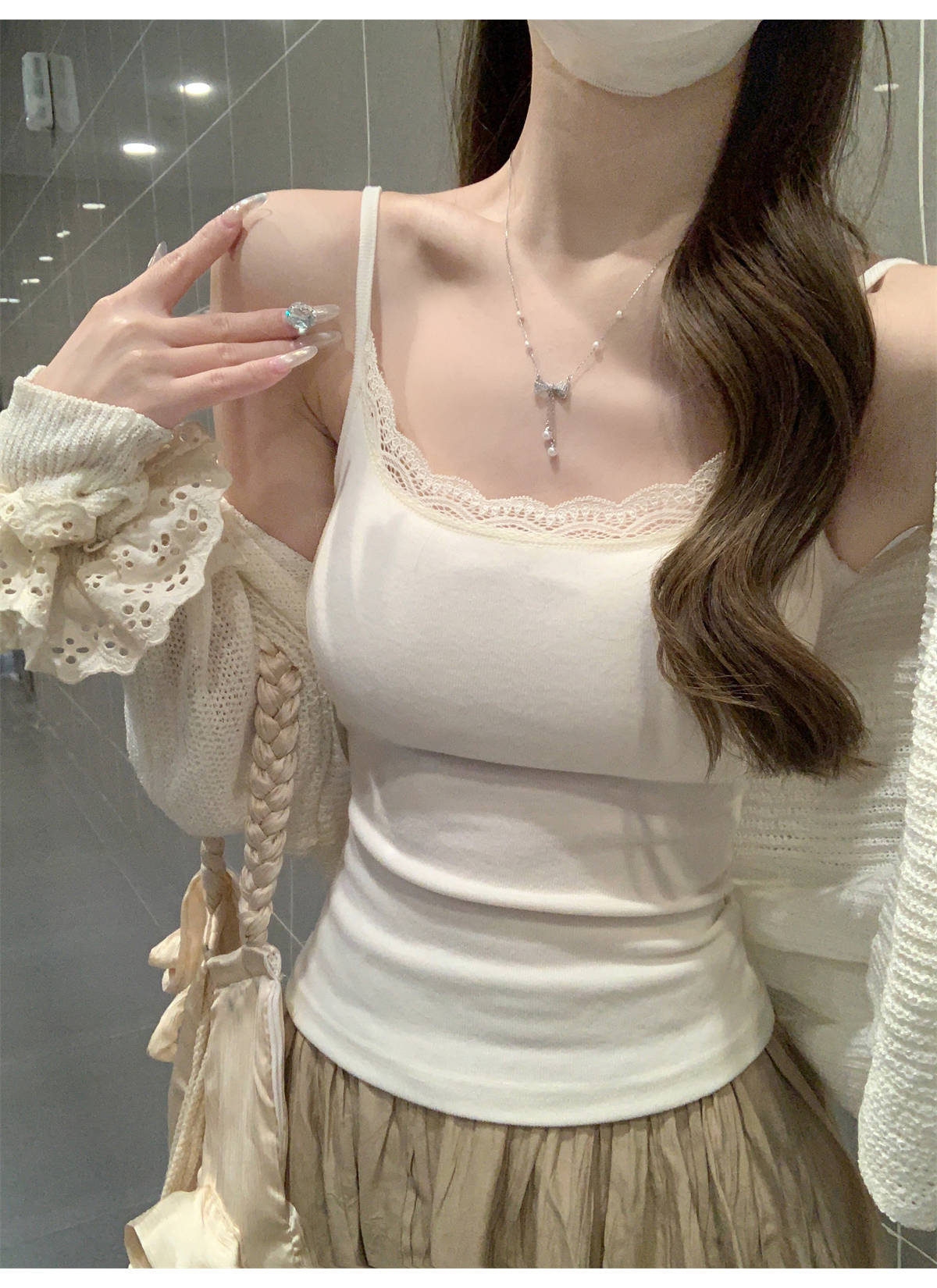 TB009 带胸垫蕾丝花边背心